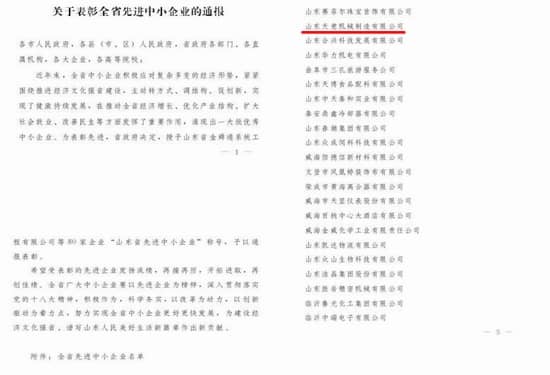 山东天意机械被评为全省先进中小企业表彰链接:http://www.smesd.gov.cn/view/zhongyaotongzhi/315751.html